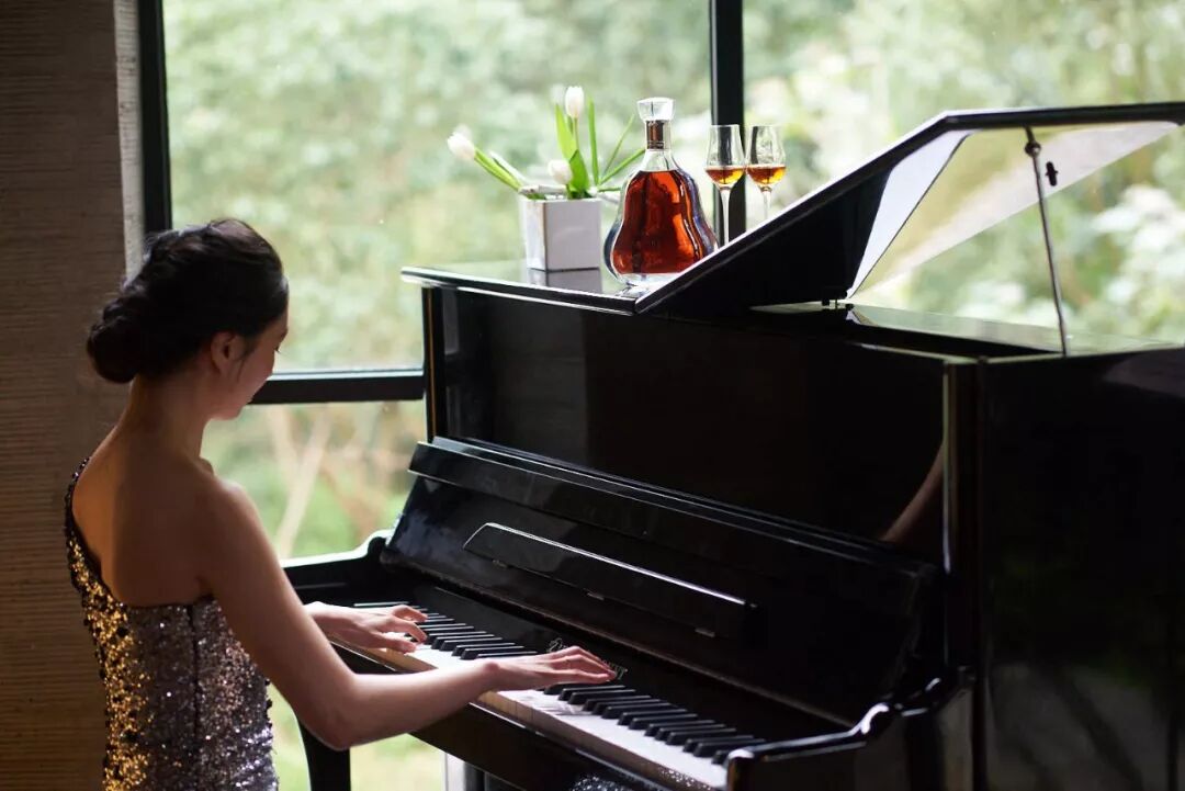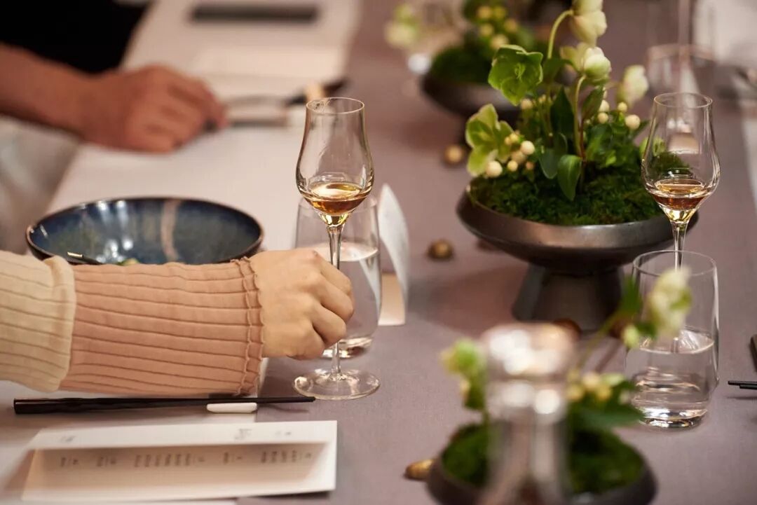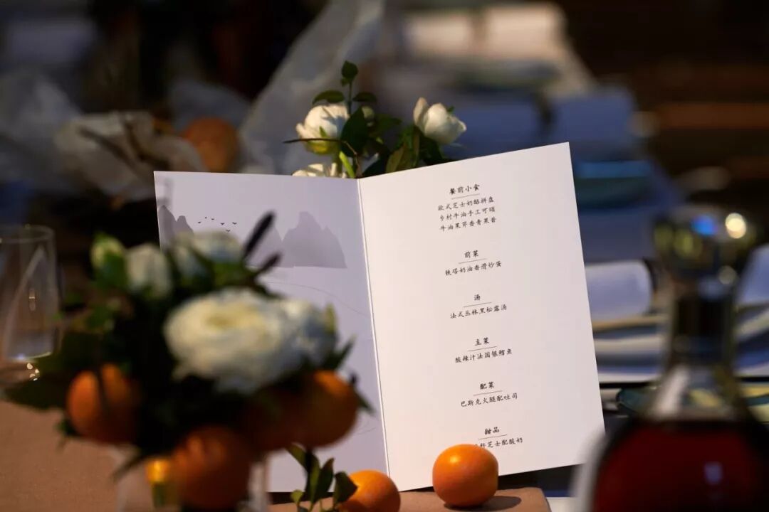 抬头便见精致妩媚的花旦一步步从阶梯走来,旅法钢琴家和小提琴家的默契配合,与悠久东方戏曲丝丝入扣,带来碰撞和感悟。百乐廷的馥郁花果香气弥漫交错,随着《牡丹亭·游园》细腻婉转的唱腔和花粉水袖辗转共鸣,正如百乐廷和东方食材的结合巧妙而和谐。盛在寓意吉祥的万寿无疆盏中的餐后饮品,入目是茶,入口却惊喜地发现是杯温暖且香气令人陶醉的V.S.O.P冬日特调热饮。